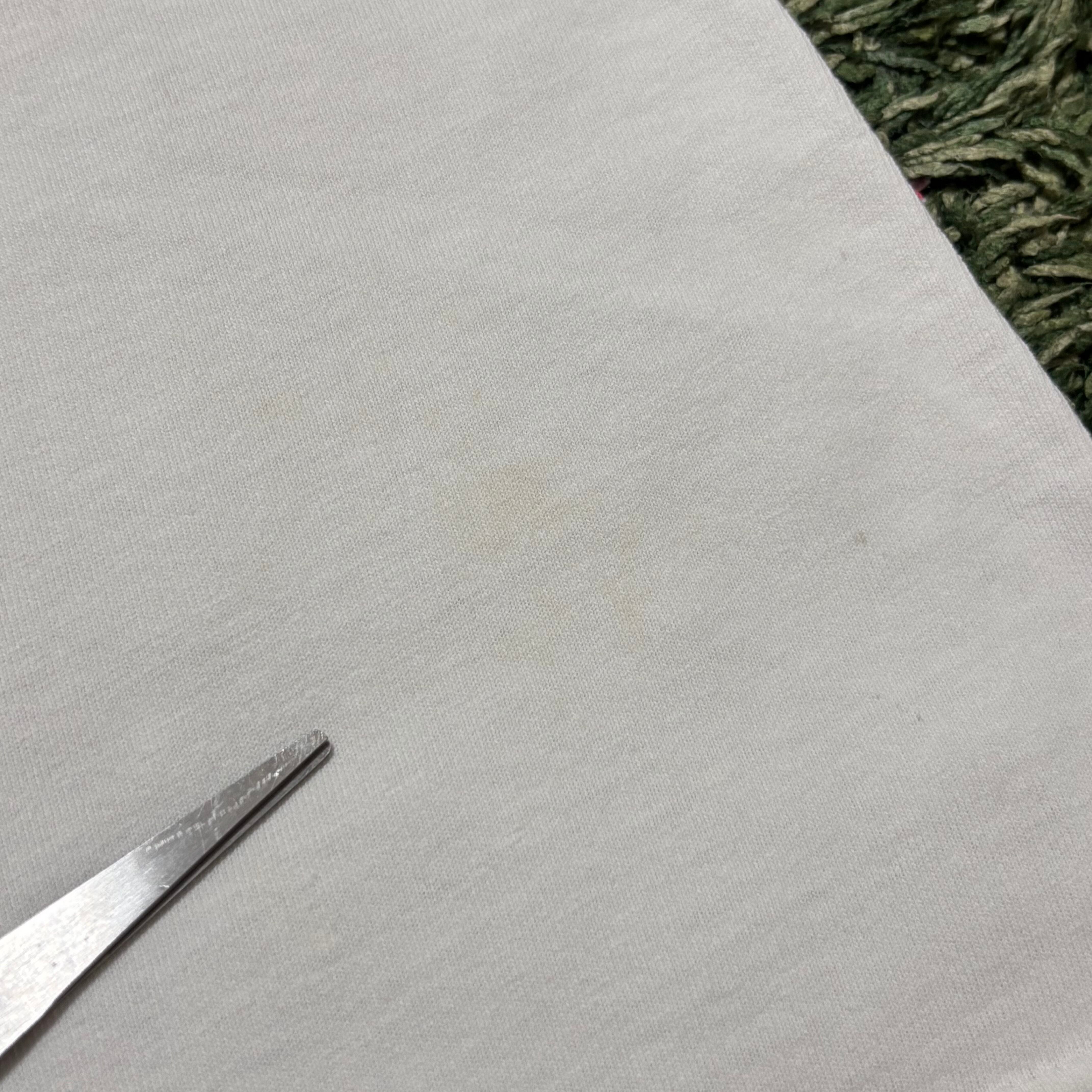 薄いシミ汚れ、首元のダメージや小穴があります!