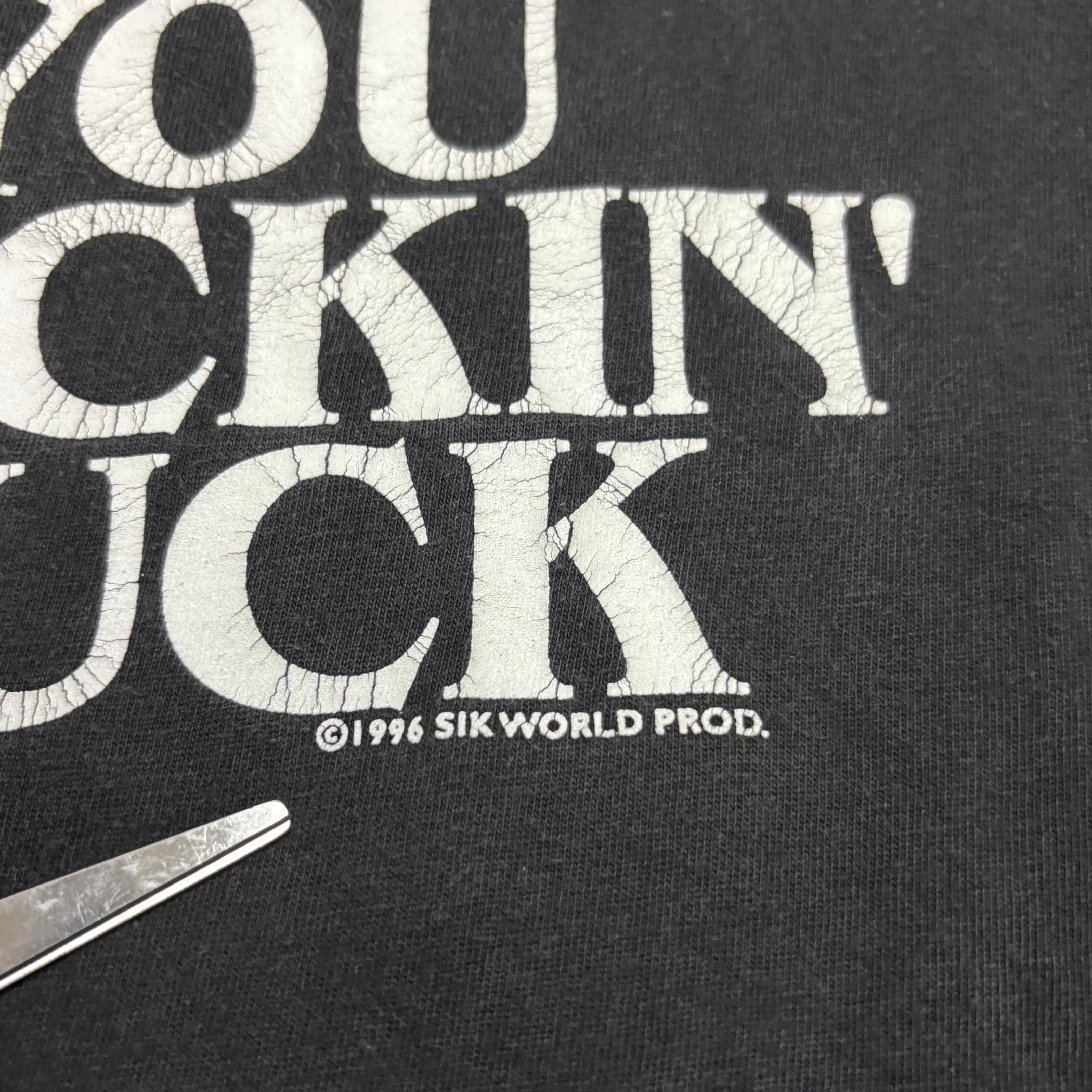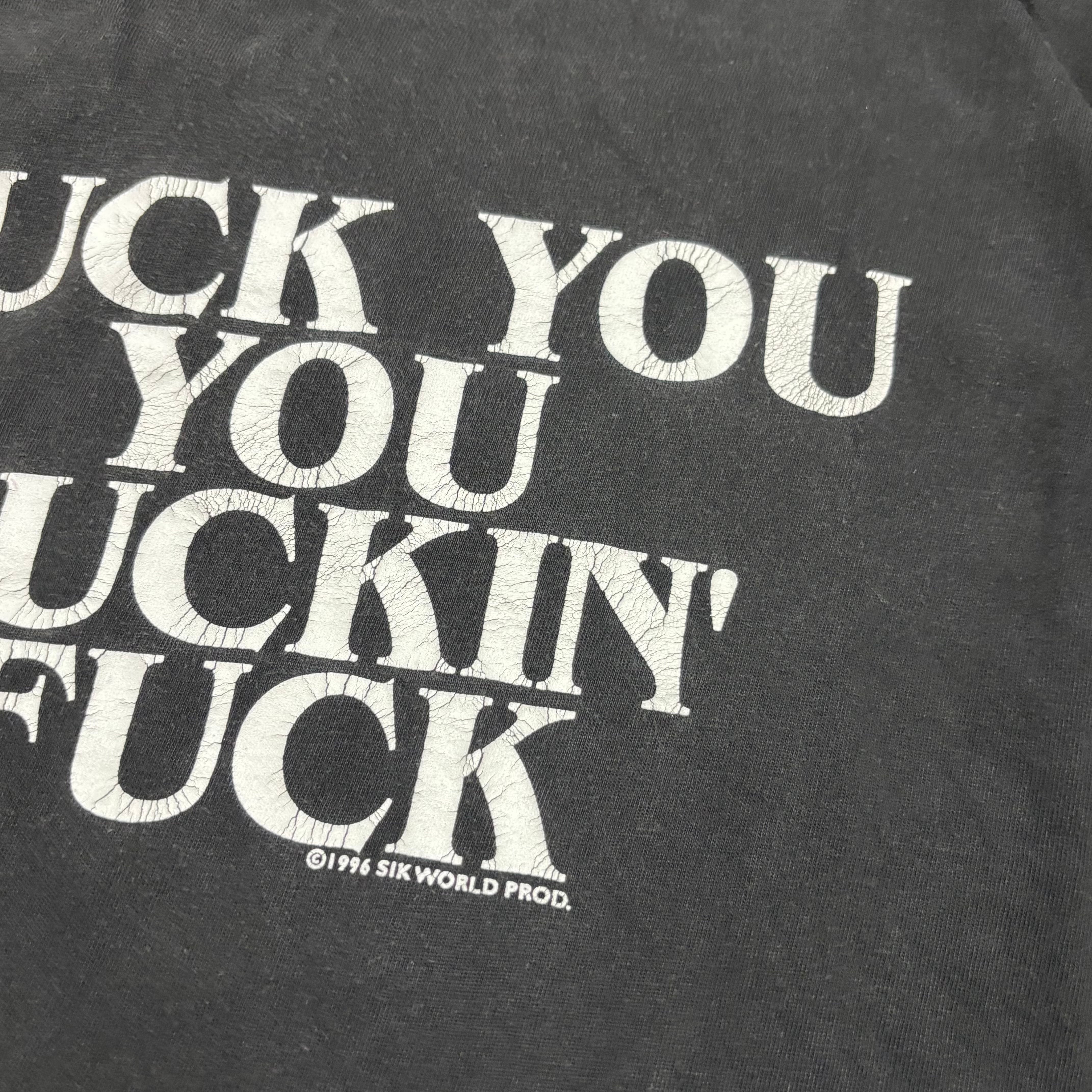 "魂プライス" 90s SIK WORLD tシャツ FUCK YOU YOU FUCKIN’ FUCK blue velvet ファック ©️1996 XL