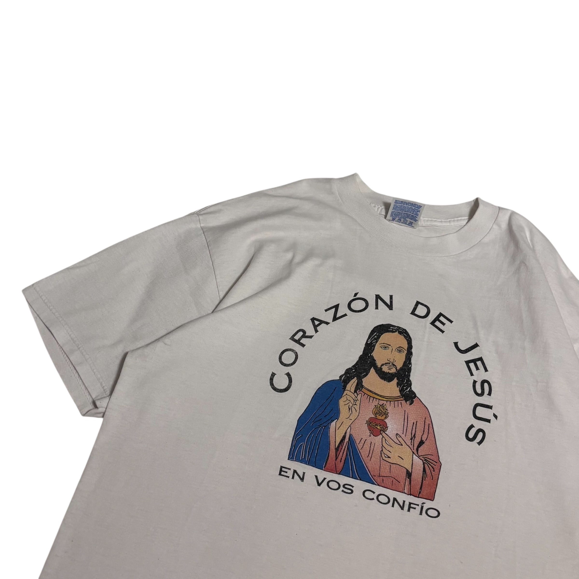 "燃えているハート" 00s JESUS tシャツ ジーザス Christ キリスト hanes ヘインズ CORAZÓN DE JESÚS EN VOS CONFÍO