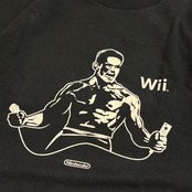 フロントのみのプリントですが,こちらは当時のNintendo of Americaの社長、レジー・フィスエーメ氏をイメージしたキャラクターと