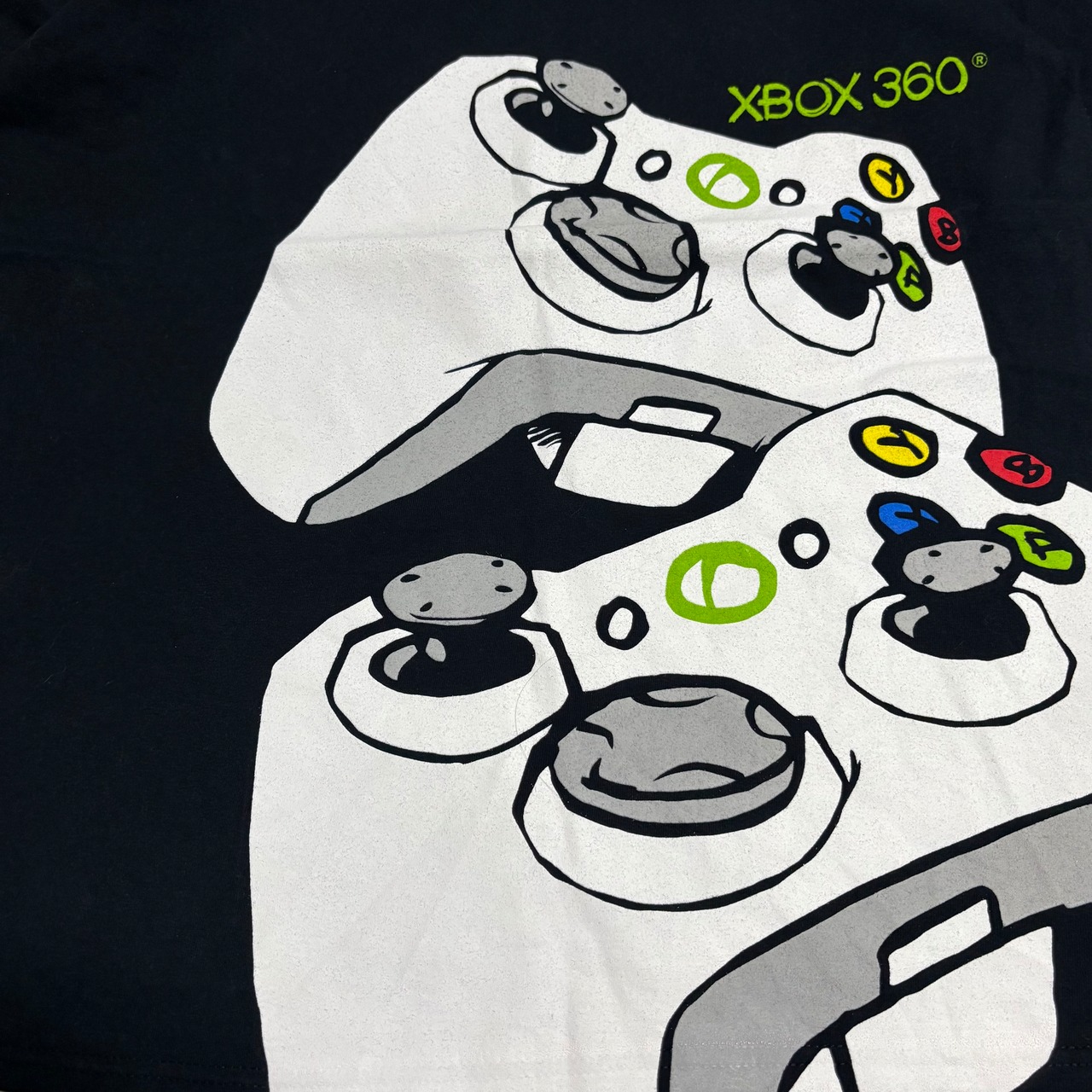 2つのXbox 360コントローラーが重なり合うようにプリントされており、