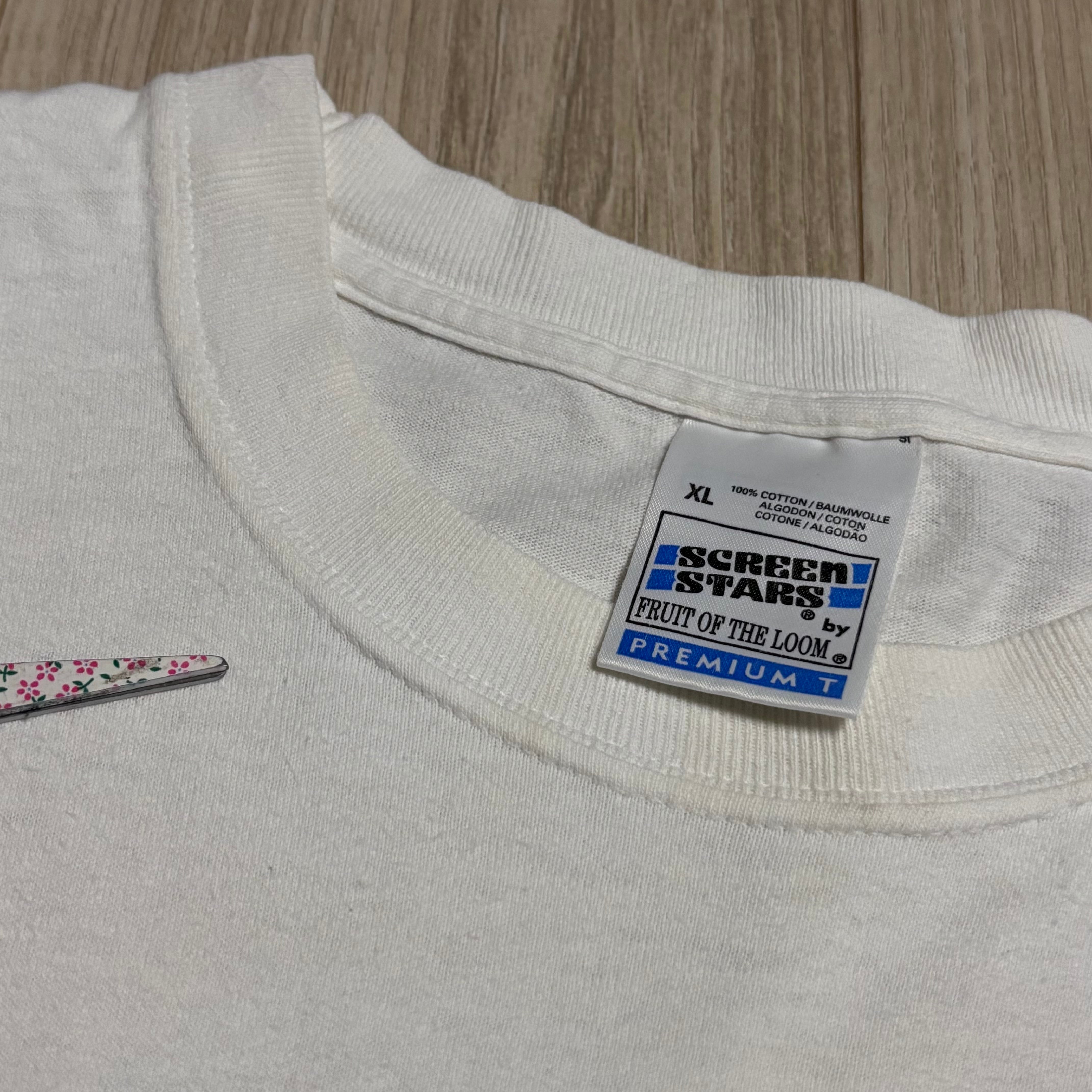 タグにはSCREEN STARS(by FRUIT OF THE LOOM)製のボディが使われており、サイズXLと完璧な個体です!