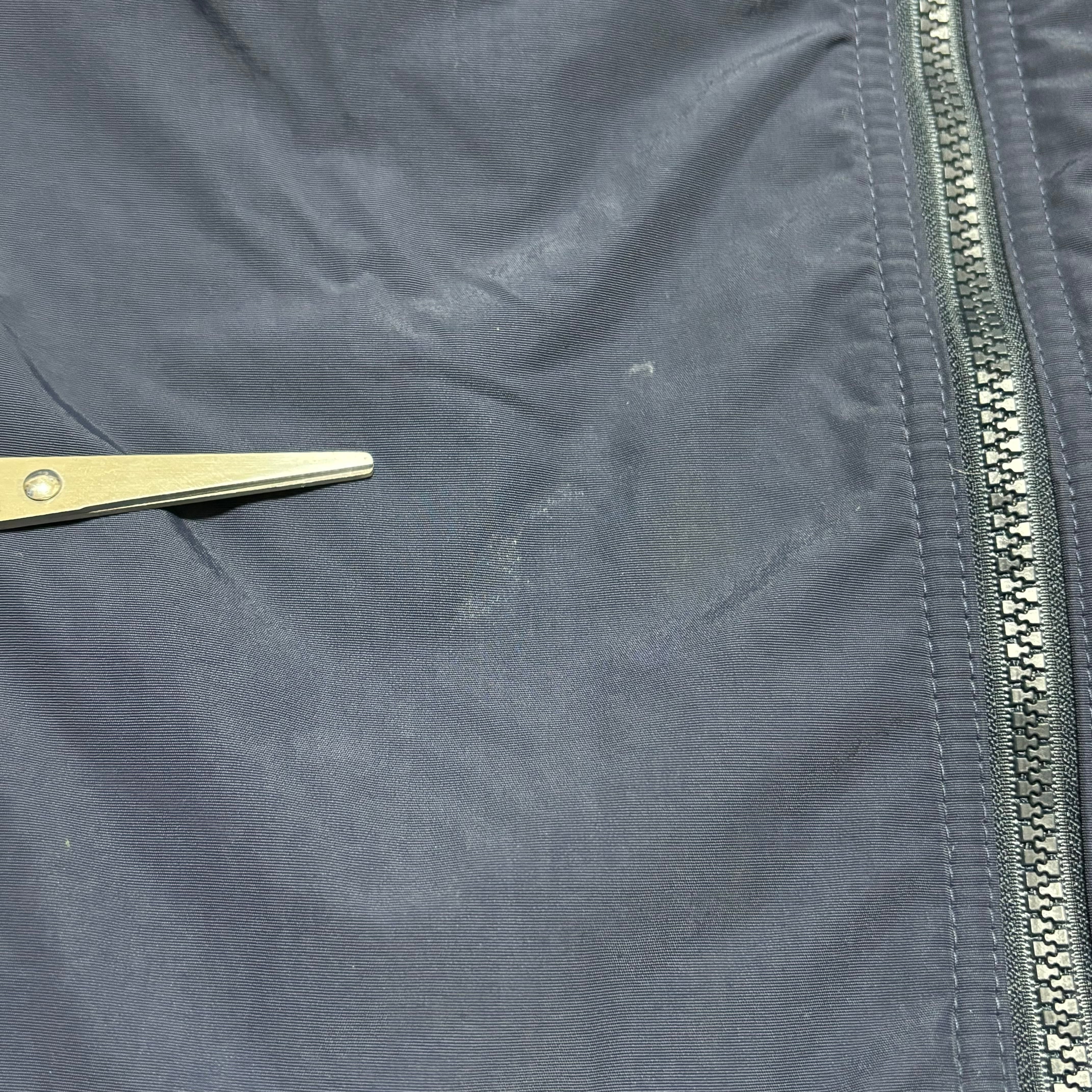 ほぼ同型のこちらは、表地はナイロンシェルに裏地にはフリースライナー、そして両袖の内側には中綿を搭載した防寒性にも優れた一着です!