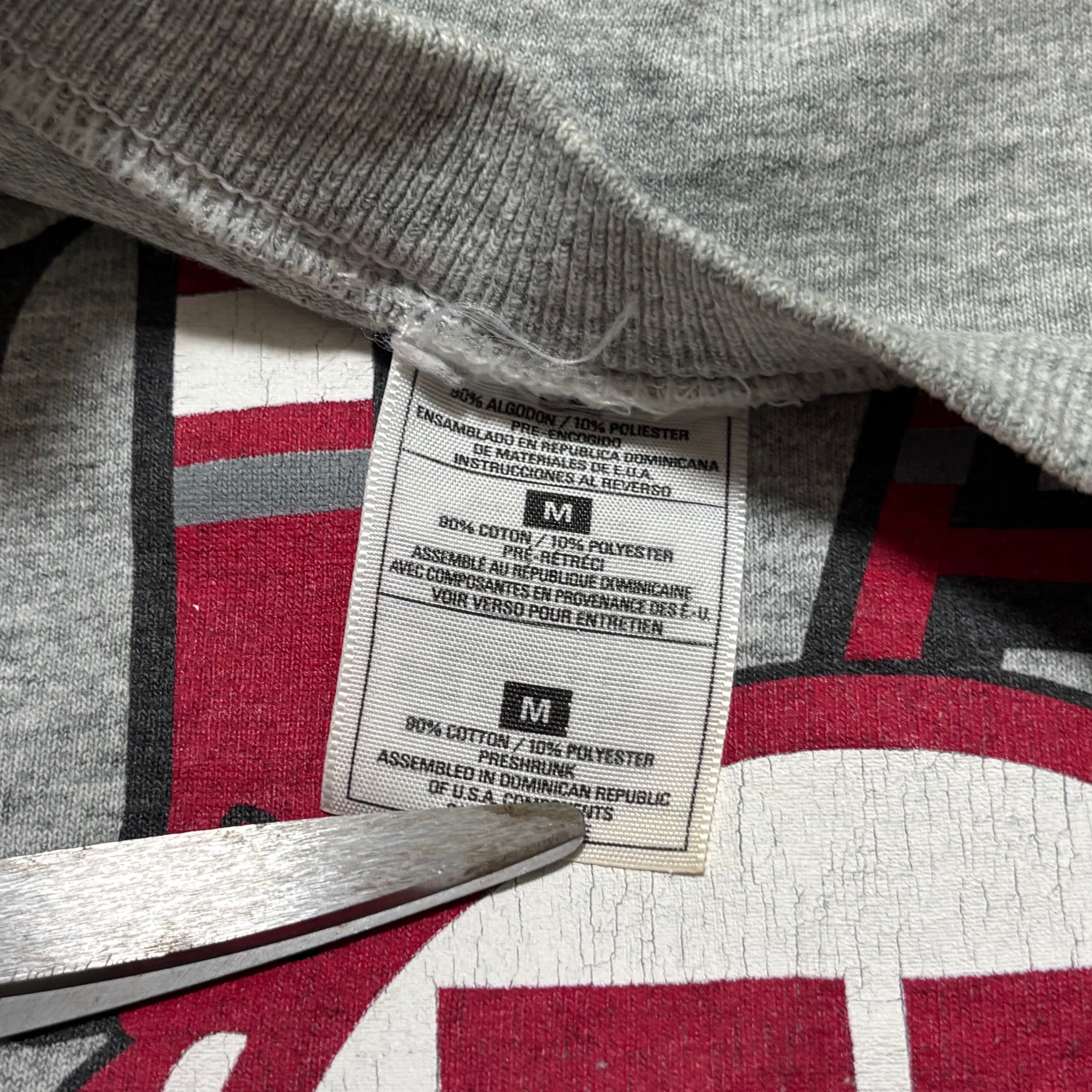 フロントにユタ大学のカレッジロゴがプリントされた一枚なのですが、画像の通りペンキ飛びがある最高の個体になります、、笑